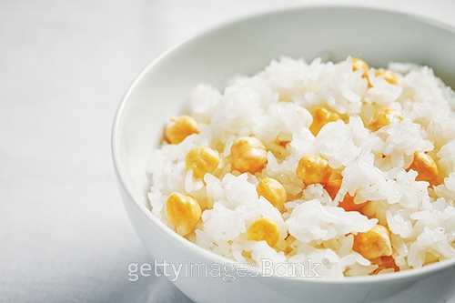 - 밥을 조금 줄이고 병아리콩을 얹거나