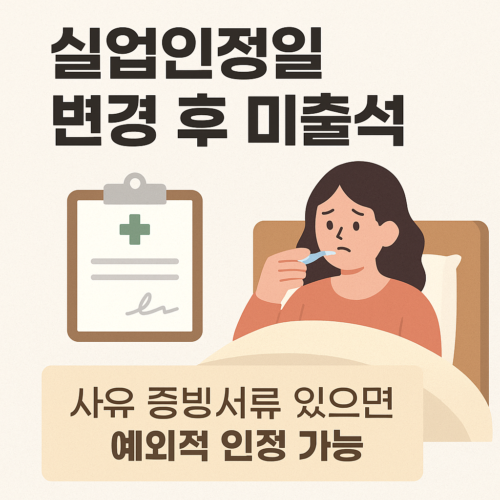 실업인정일을 연기했는데도 출석하지 못했다면 실업급여를 받을 수 있을까요? 고용보험 규정, 예외 인정 조건, 병가 증빙 방법까지 한 번에 정리했습니다.