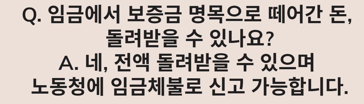 Q. 임금에서 보증금 명목으로 떼어간 돈, 돌려받을 수 있나요?