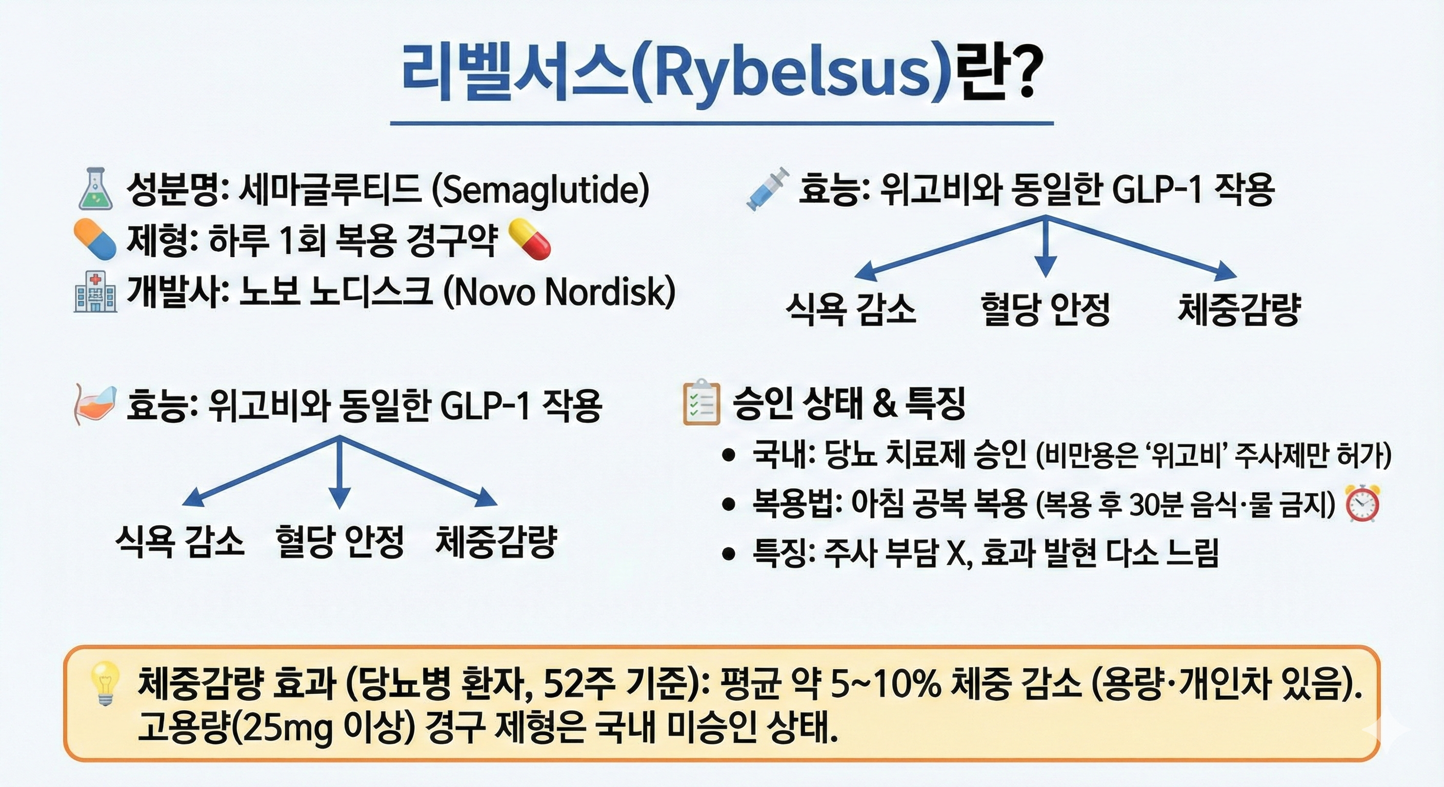 - 경구형(리벨서스)은 속 쓰림, 위산 역류 등의 위장 증상이 많습니다.