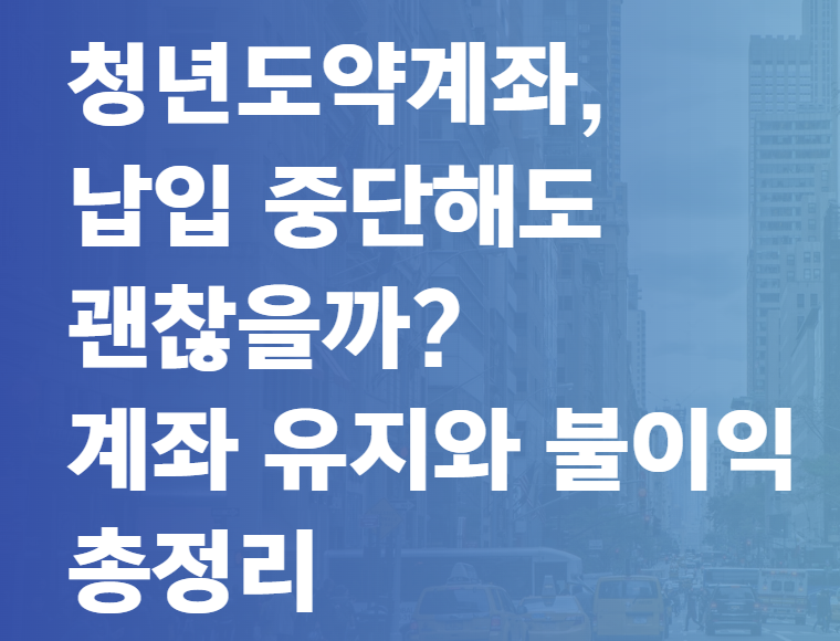 오늘은 청년도약계좌의 납입 중단 시 계좌 유지, 불이익, 관리 방법을 총정리해 드리겠습니다.