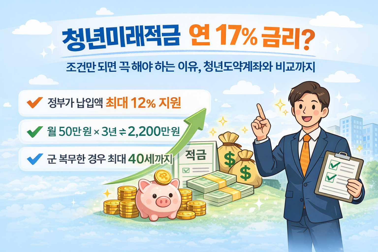 청년미래적금은 연 17% 적금일까? 2026년 출시 예정 청년미래적금의 가입 조건, 소득 기준, 정부지원 비율, 만기 수령액과 청년도약계좌와의 차이를 정확한 정보 기준으로 정리했습니다.