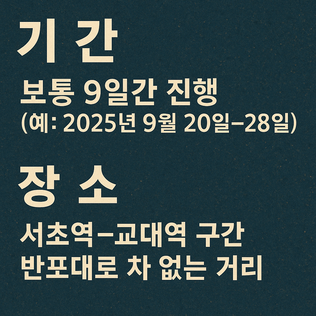 매년 새로운 아티스트, 다양한 체험, 그리고 반포대로만의 독특한 분위기를 선사하며 “서울에서 꼭 가봐야 할 가을 축제”로 자리 잡고 있습니다.