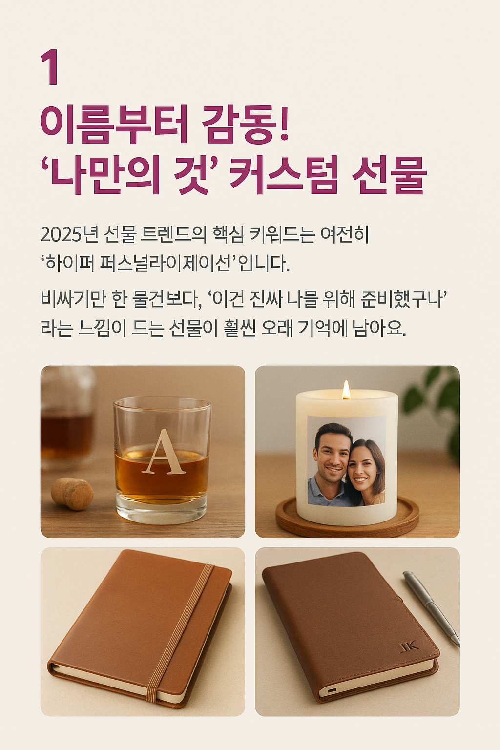 2025년 선물 트렌드의 핵심 키워드는 여전히 **‘하이퍼 퍼스널라이제이션(Hyper-Personalization)’**입니다.
