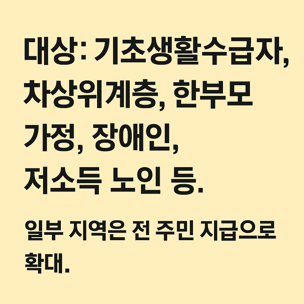 - 일부 지역은 전 주민 지급으로 확대.
