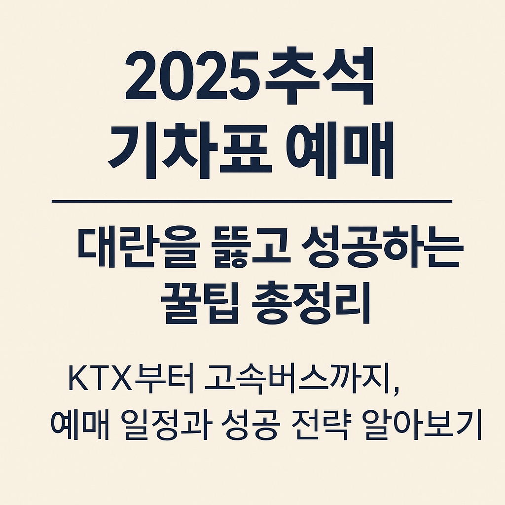 2025 추석 기차표 예매, 성공할 수 있는 모든 전략을 총정리했습니다. 코레일·SRT 예매 일정부터 사전 준비물, 실패 없는 꿀팁, 좌석 취소분 공략, 대체 교통수단까지 실전 정보만 모았습니다.