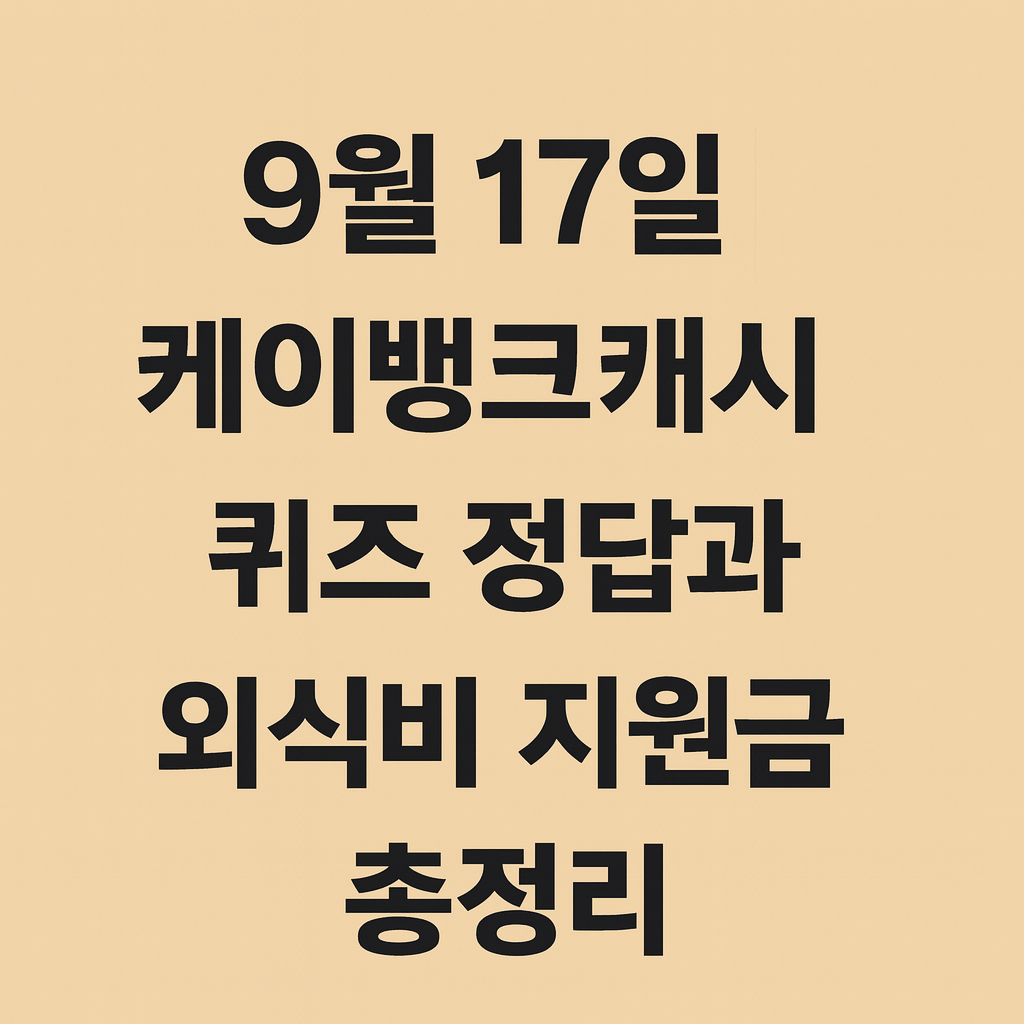 9월 17일 케이뱅크캐시 퀴즈 정답은? 오늘의 퀴즈 정답과 외식비 지원금 이벤트 참여 방법, 적립 캐시 활용법, 앱테크 꿀팁까지 한눈에 정리했습니다.