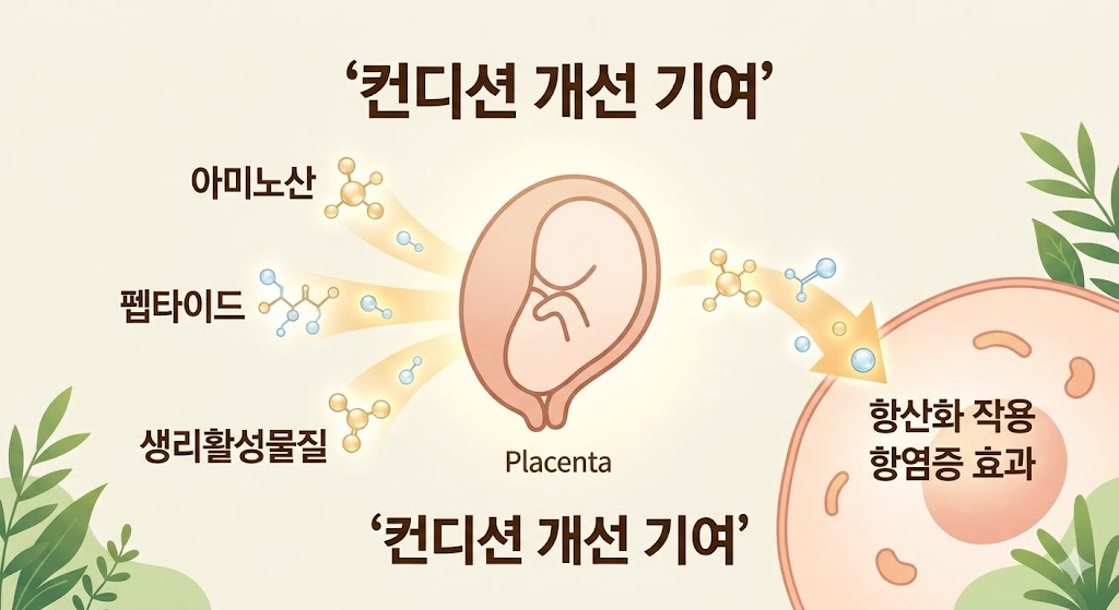 현재 연구들에서는 태반추출물에 여러 아미노산, 펩타이드, 생리활성 물질이 포함되어 있고, 이들이 항염증, 항산화, 면역조절 같은 작용과 관련이 있을 가능성이 제시되고 있습니다. 이런 작용이 피로감, 컨디션 저하, 수면 문제 같은 증상에 어느 정도 영향을 줄 수 있다는 해석이 있습니다.