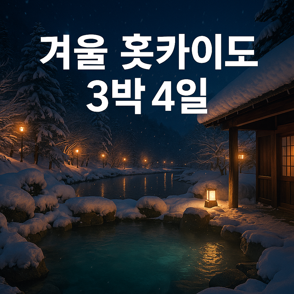 겨울 홋카이도 3박 4일 핵심 동선. ①조잔케이 료칸 노천탕 ②삿포로 시내 관광·쇼핑 ③오타루 감성 산책 ④공항 온천 마무리. 대중교통만으로 가능한 이동법, 날씨·복장, 교통패스, 예산표, FAQ까지 모두 정리했습니다.