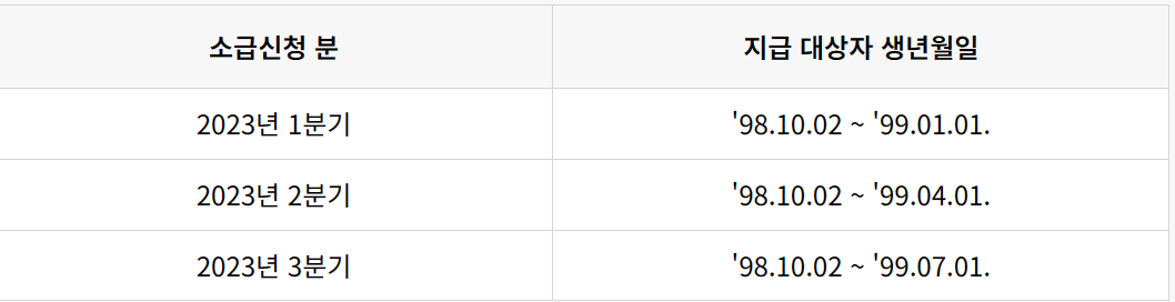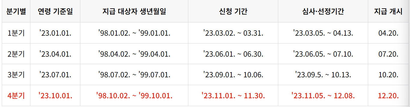 2023년 10월 1일 기준으로 만 24세인 청년에 한해서,