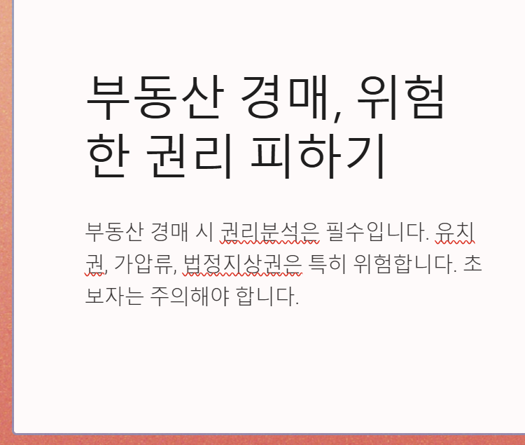 특히, 유치권, 가압류, 법정지상권은 초보자가 쉽게 이해하기 어렵고, 낙찰 후에도 문제가 될 수 있는 위험한 권리입니다.