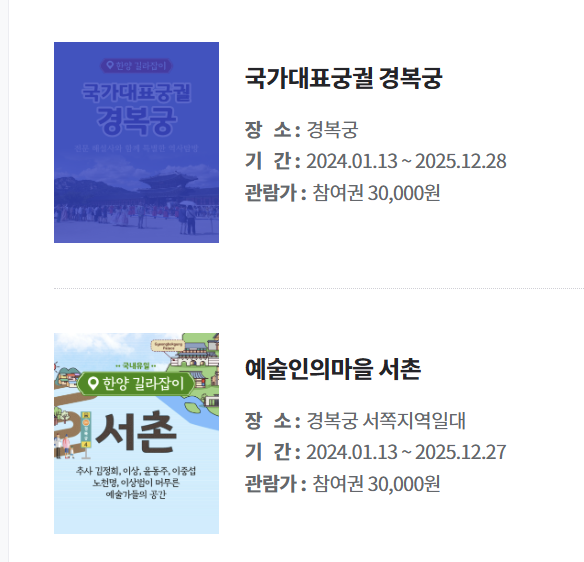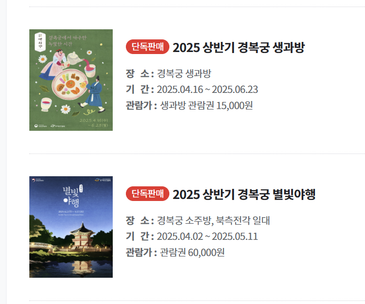 | 예매처 | 문화유산채널 or 투어톡 공식홈페이지 |