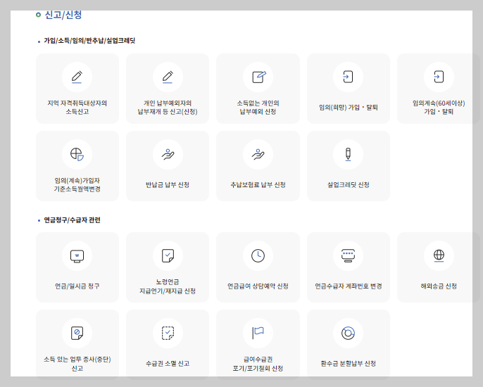 국민연금 모바일 앱인 '내 곁에 국민연금'에서 공동인증서 또는 카카오페이인증 로그인을 하여 가입내역, 각종 조회가 가능하며, 연금청구 및 신청도 할 수 있습니다.