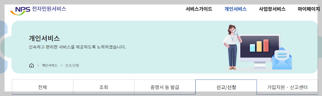 인터넷 검색창에 '국민연금 전자민원서비스'