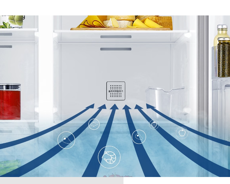 3️⃣솔라파워탈취기 시스템을 설치햐여, 냄새 강한 김치나 생선등을 과학적 공기순환 탈취로 냄새 없이 보관할 수 있습니다.