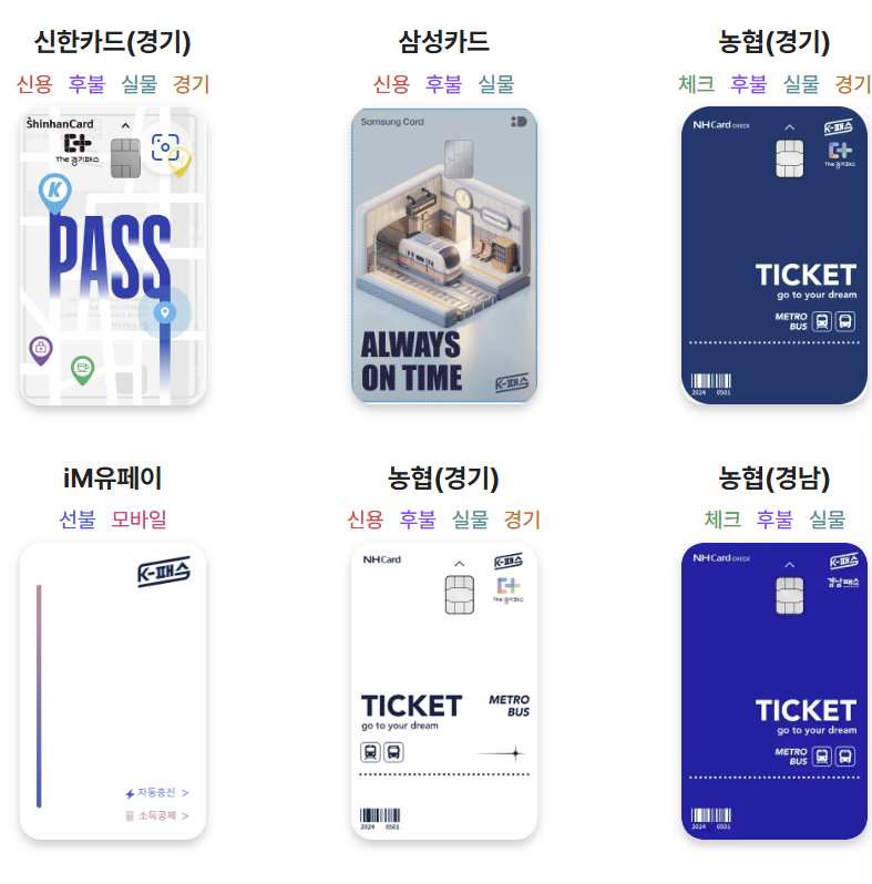 1. 카드 발급: 국민, 농협, 신한, 현대, 우리, BC, 하나, 삼성 등 참여 카드사에서 K-패스 전용 카드를 신청합니다.
