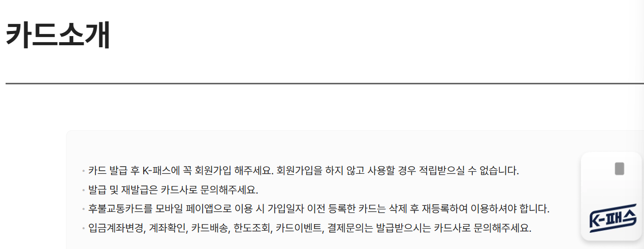 - 카드 등록 필수: K-패스 혜택을 받기 위해서는 발급받은 카드를 K-패스 공식 누리집이나 앱에 등록해야 합니다.