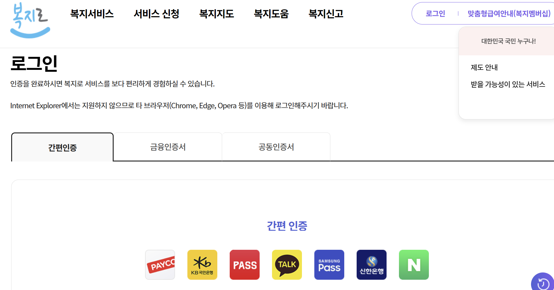 1. ▶️복지로 홈페이지> 우측상단의 맞춤형 급여안내클릭 > 받을 가능성 있는 서비스 클릭 > 인증서를 통해 인증완료 후에 로그인하기 > 개인정보활용동의하기 > 신청정보입력하고 가입신청클릭하면