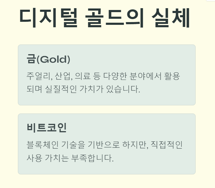 ✅ 비트코인: 블록체인 기술을 기반으로 하지만, 직접적인 사용 가치는 부족해요.
