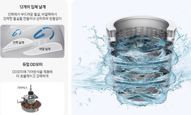 ◾듀얼 DD모터와 12개의 입체날개가 만드는 입체돌풍물살