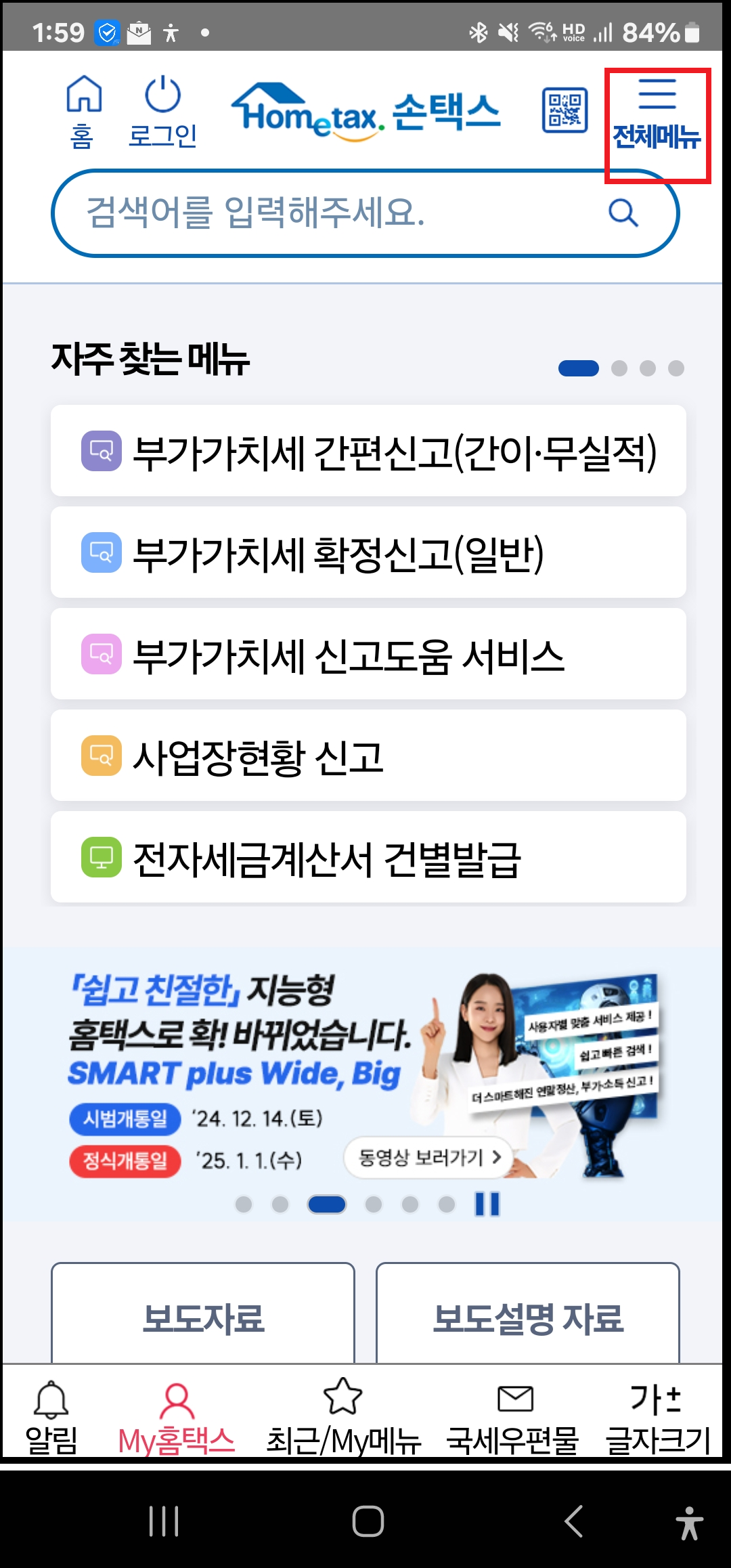 > 스마트폰에서 손택스 앱을 실행합니다.