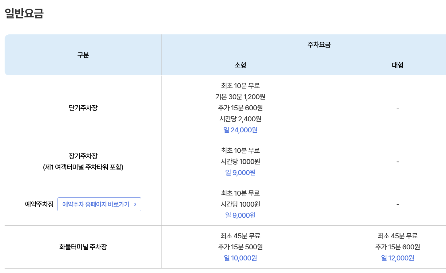 | 공항공사 공식 발렛파킹 | 20,000원 | 신뢰도 높음 | 성수기 사전 예약 필수 |