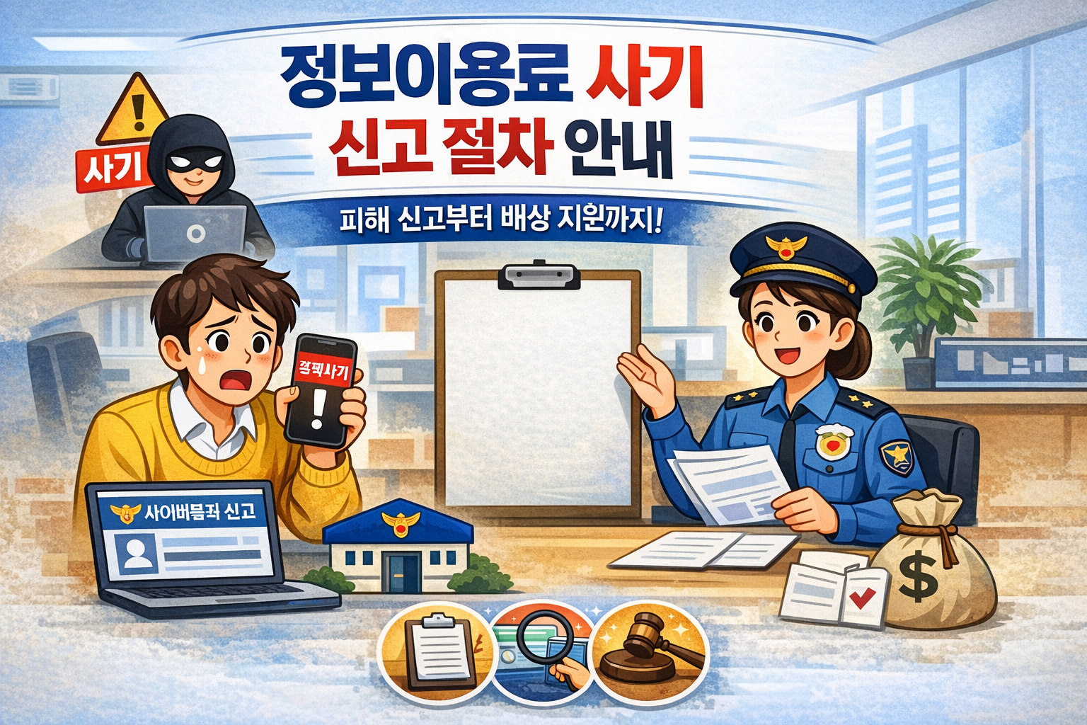 정보이용료 사기 피해를 입었을 때 신고해야 하는 곳, 절차, 준비 서류, 신고 후 받을 수 있는 지원까지 한 번에 정리했습니다. 경찰 신고 방법과 증거 준비 요령을 쉽게 알려드립니다.