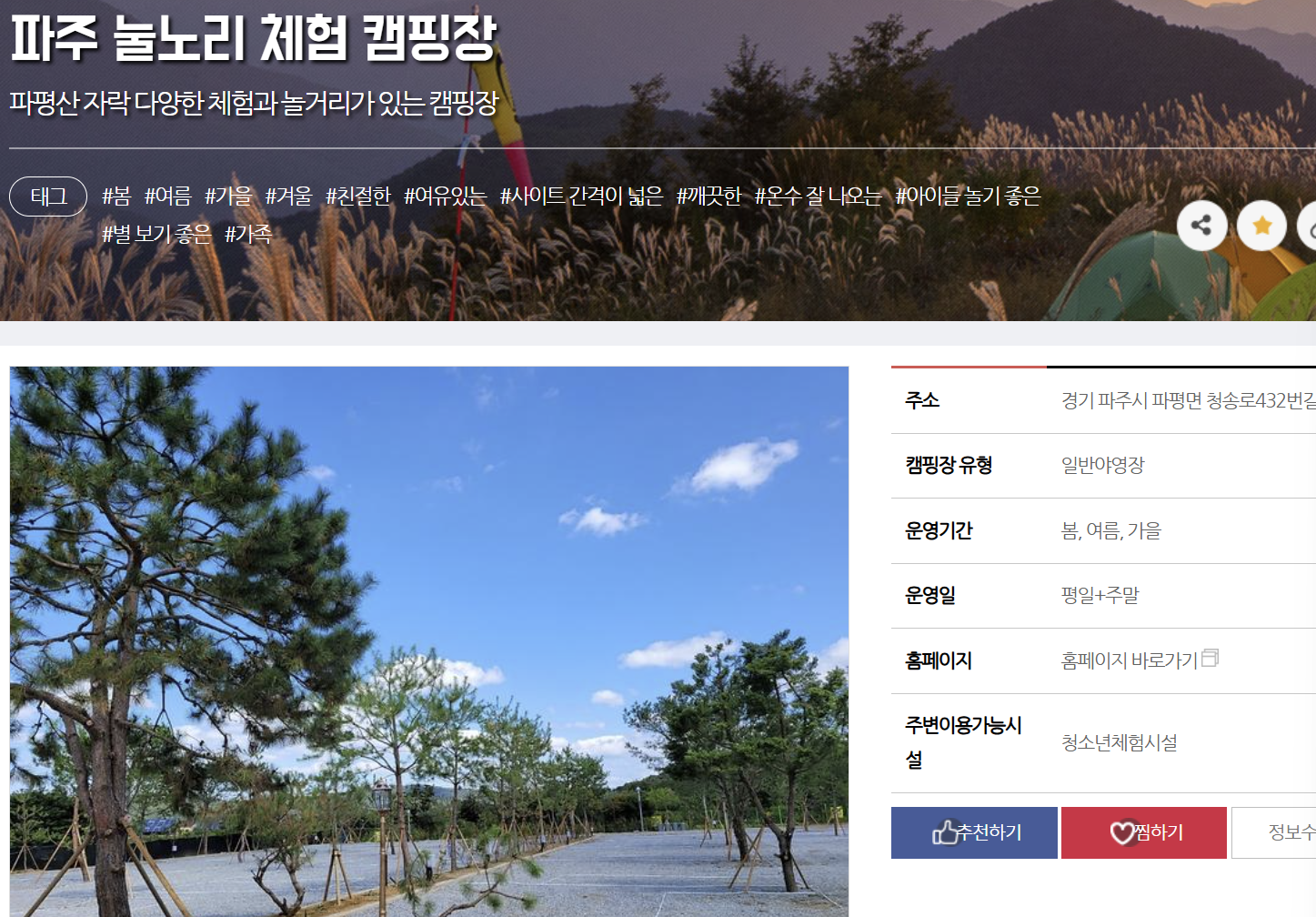 - 파주시 운영 공공 캠핑장으로 시설 관리 우수