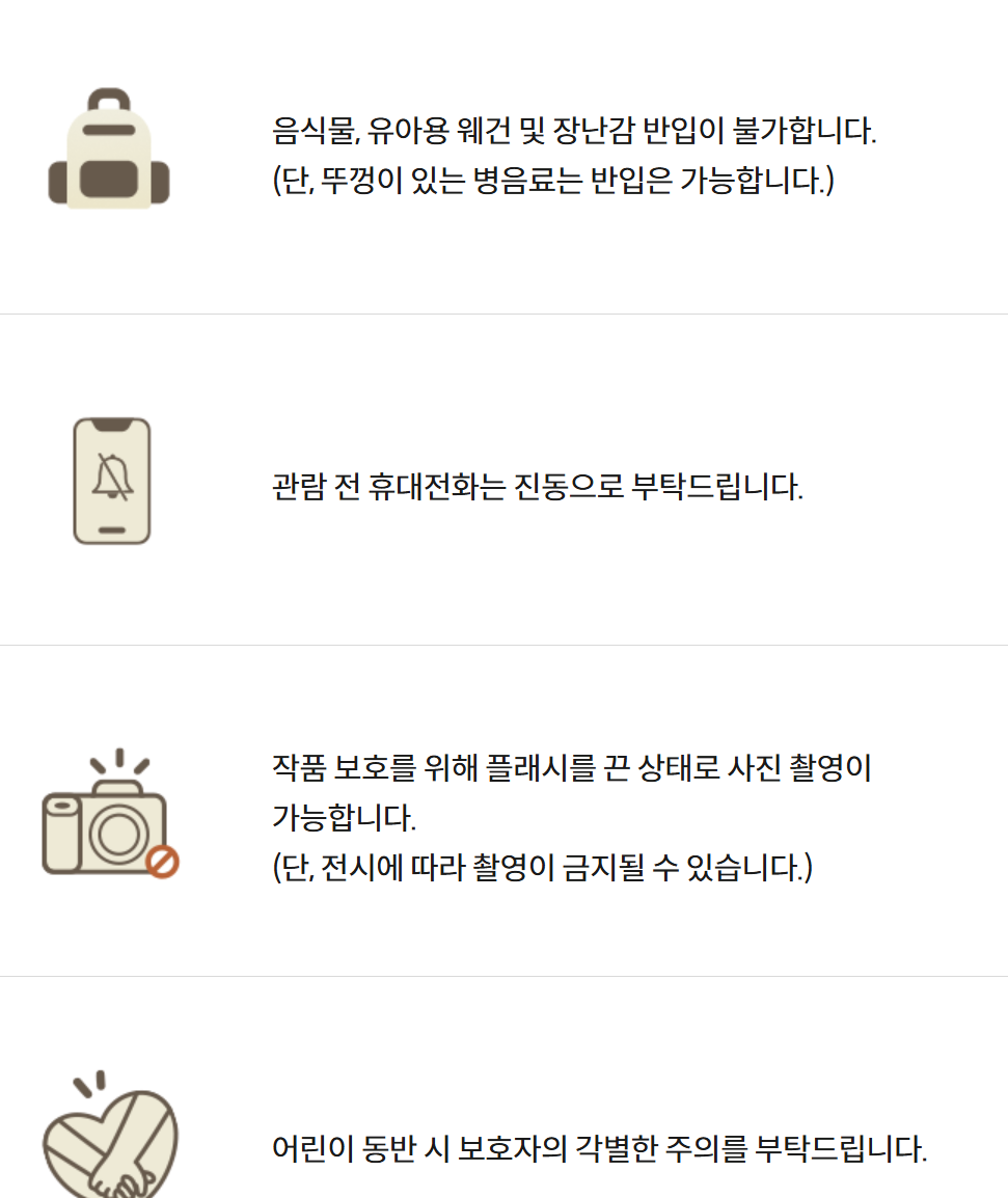 ▪️ 입장 시간 준수: 예약한 시간 외 입장 불가하므로 시간을 지켜 방문 필수.