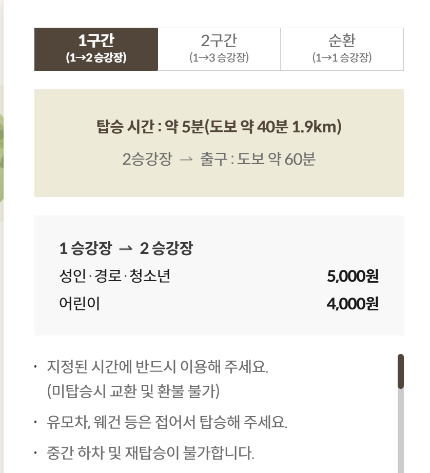 ✔ 모노레일 요금: 1구간 5,000원 / 2구간 7,000원 / 순환 9,000원 (사전 예약 필수)