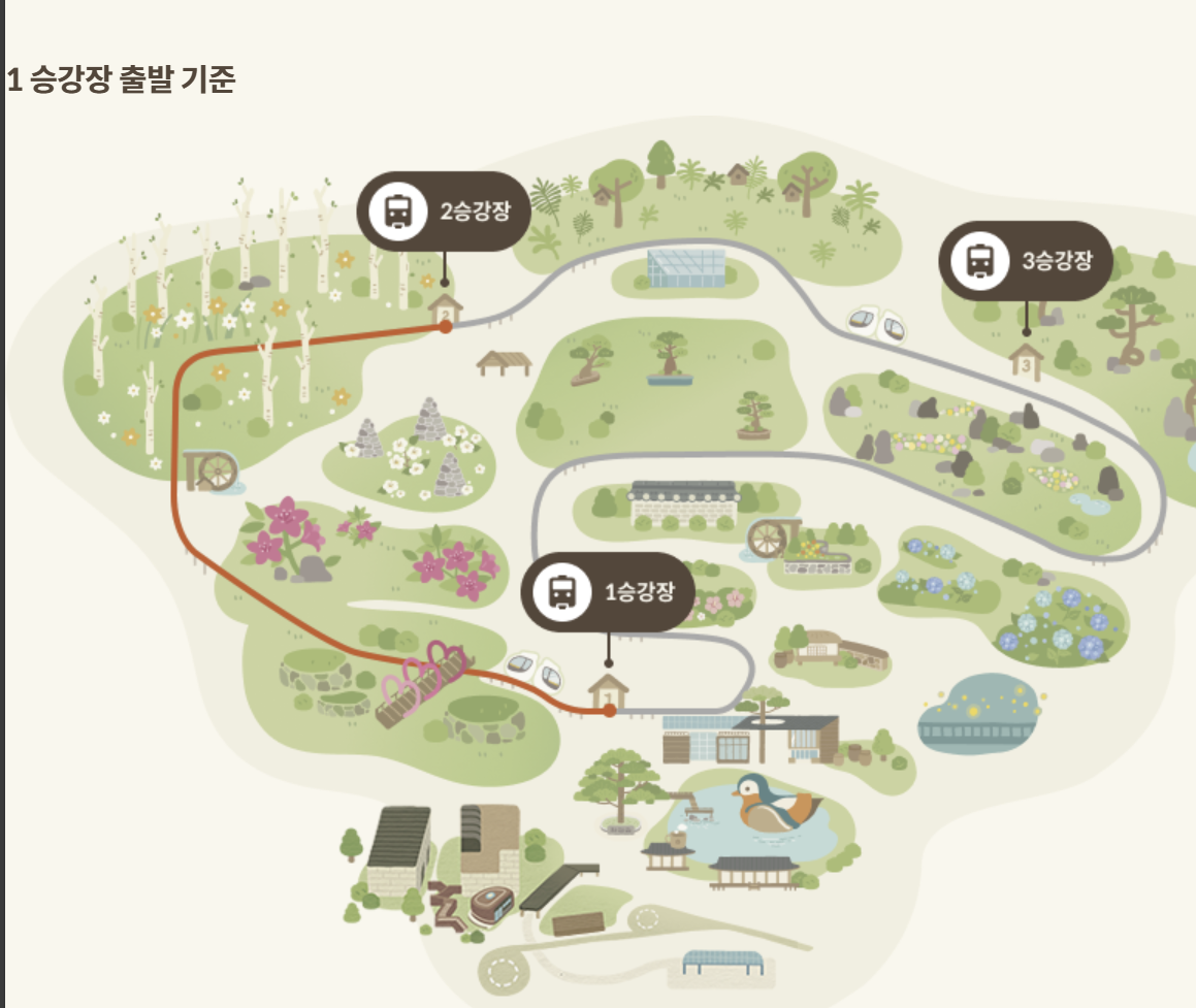 2시간 코스 - 단풍원 → 연못 정원 → 소나무 정원 → 모노레일 탑승