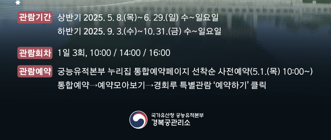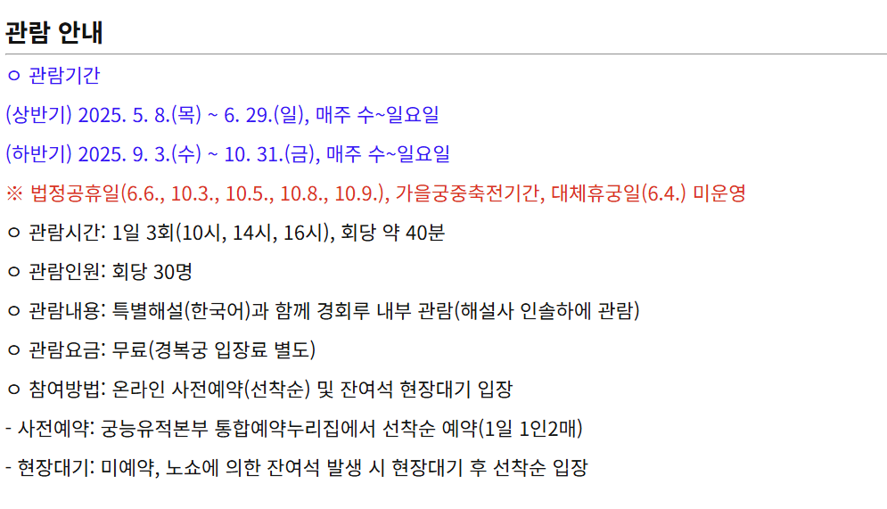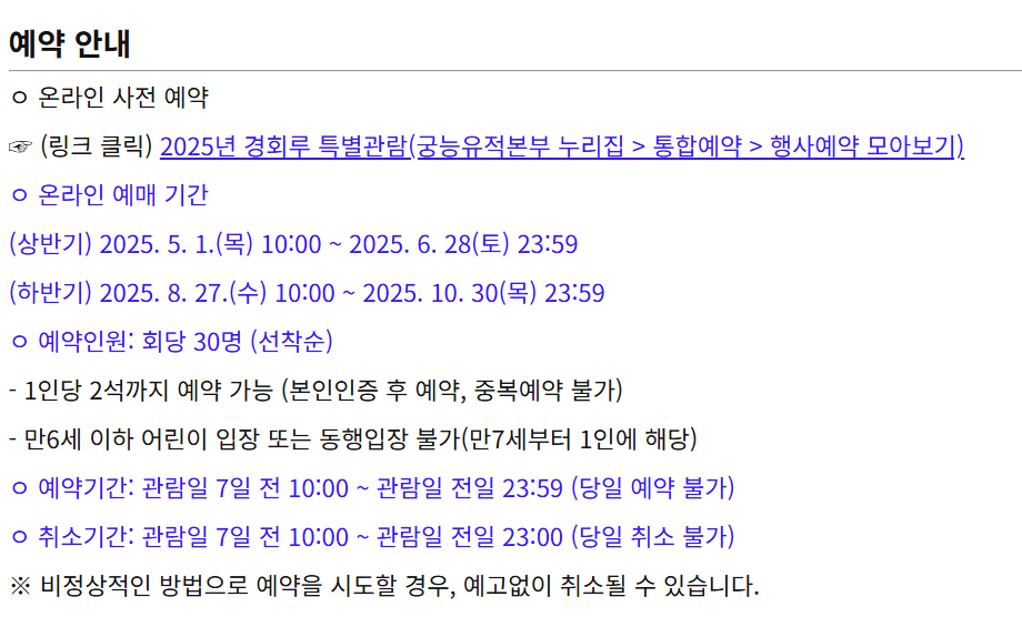 - 예약처: 궁능유적본부 누리집 통합예약 시스템