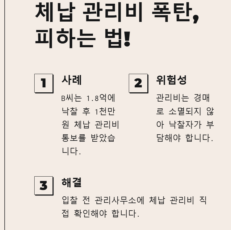 ✅ 2. 체납된 관리비 폭탄을 떠안을 수도 있다!