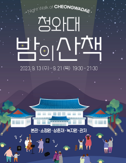 청와대 밤의 산책축제는 1일 2000면의 관람객이 탐방할 수 있습니다. 청와대를 비추는 경관조명과 다채로운 공연과 함께 청와대의 밤을 느끼시기 바랍니다.