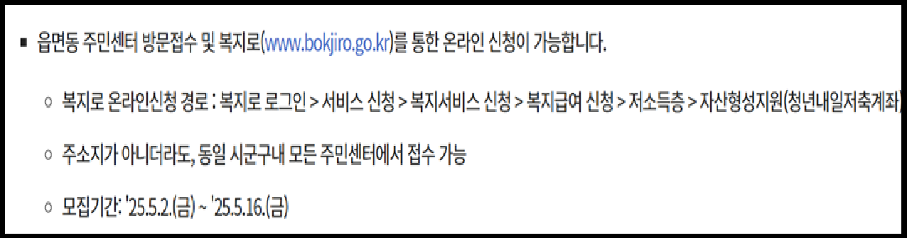 복지로 청년내일 저축계좌 신청하기